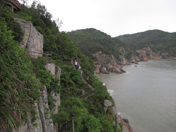 仙疊巖的山路很是崎嶇,我們扶著欄桿往上爬,只是為了在高處看海島的全貌。